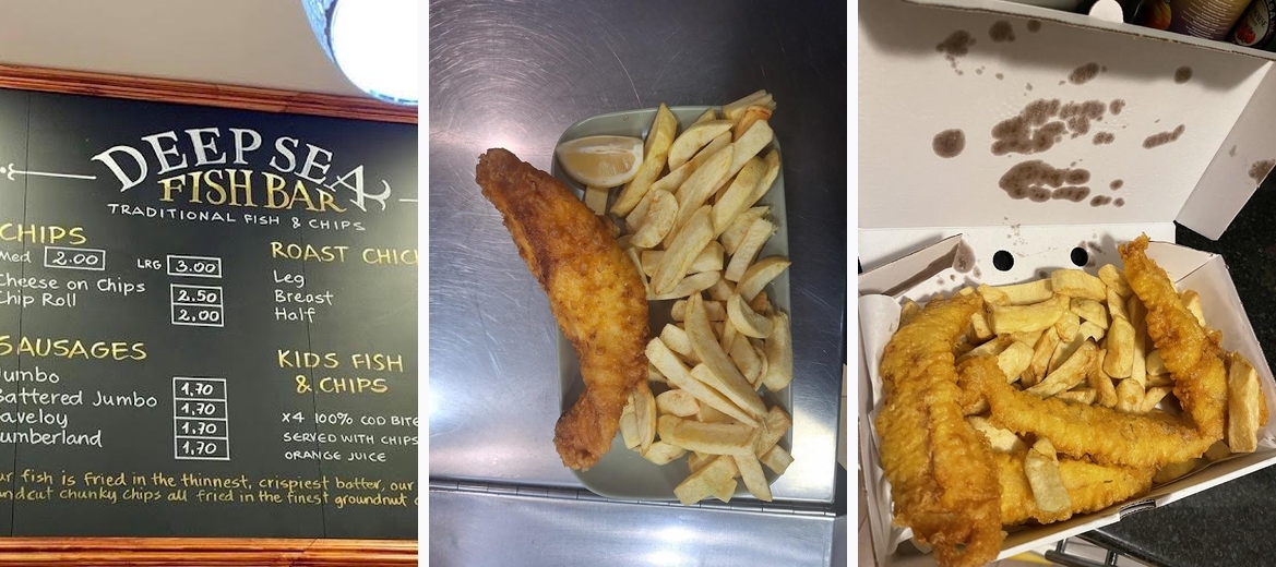 Deep Sea Fish Bar excels in serving freshly cooked fish and chips, offering generous portions and a variety of menu items beyond traditional fare. Each dish is prepared to order, ensuring crisp and flavorful meals each time.